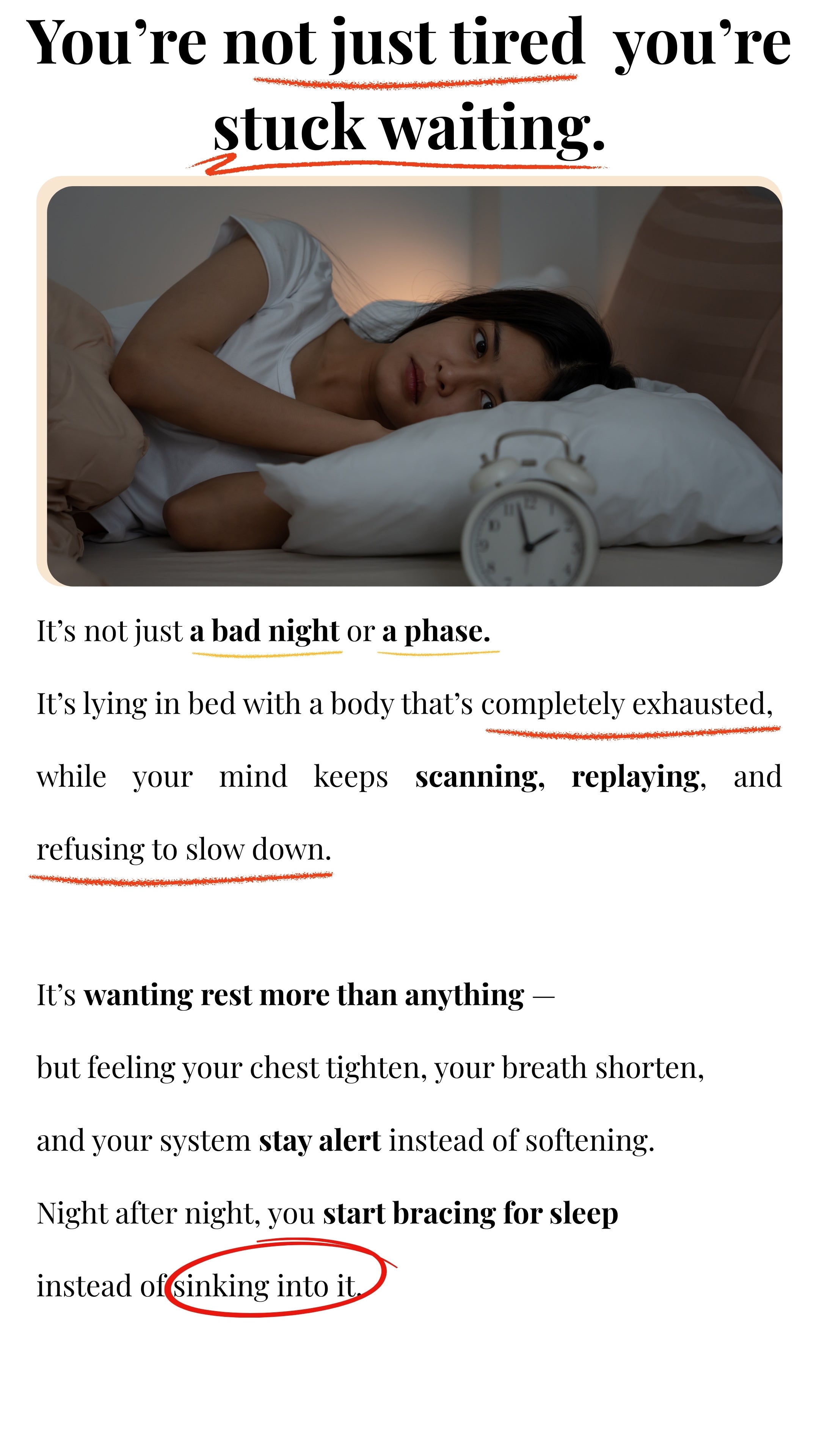 Every night you wait, your body learns the same message: “The bed isn’t safe.”